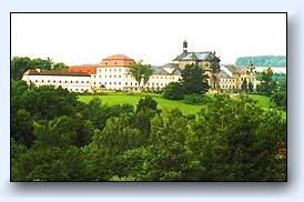 Zakladatelem zámku a špitálu František Antonín Špork (1662-1738) náležel k nejvzdělanějším osobnostem barokní doby. Po dobrozdání o léčivosti pramenů vybudoval v Kuksu lázně, které byly začátkem 18. století srovnatelné s evropskými lázeňskými středisky a zároveň se staly místem, kde se setkávali politikové, vědci i umělci. Lázeňská budova s kaplí byla vybudována již v letech 1692-1695 na levém labském břehu. Roku 1711 k nim přibyl zámek, divadlo a do roku 1722 byl dokončen lázeňský dům a Dům filosofů, v němž byla uložena bohatá knihovna. Až na široké schodiště k Labi a hostinec se z této části nedochovaly žádné pozůstatky. Architektonické skloubení této části areálu bylo patrně dílem italského architekta G. B. Alliprandiho, který navrhl stavbu špitálu s ústřední budovou kostela Nejsvětější Trojice s kryptou na protějším pravém labském břehu. Stavbu provedl v letech 1710-1712 italský stavitel Pietro Netolla s kameníkem Pietrem Antoniem della Torre. Špitál nechal založit Špork pro 100 chudých a zestárlých poddaných hradišťského panství. Hlavní pozoruhodností Kuksu je sochařská výzdoba před průčelím kostela a špitálu z let 1712-1731. Jejím autorem je sochař vrcholného baroka v Čechách Matyáš Bernard Braun. Ve 24 alegorických sochách Ctností a Neřestí, v alegorii osmi Blahoslavenství, v plastikách Náboženství, Andělů smrti i v soše Křesťanského rytíře vyjádřil smýšlení a postoj hraběte Šporka ke světu i životu. Mezi evropské unikáty se řadí barokní lékárna s původním mobiliářem z 1. poloviny 18. století. Ke Kuksu patří ještě Betlém s Braunovými sochami a reliéfy tesanými přímo do pískovcových skal. |